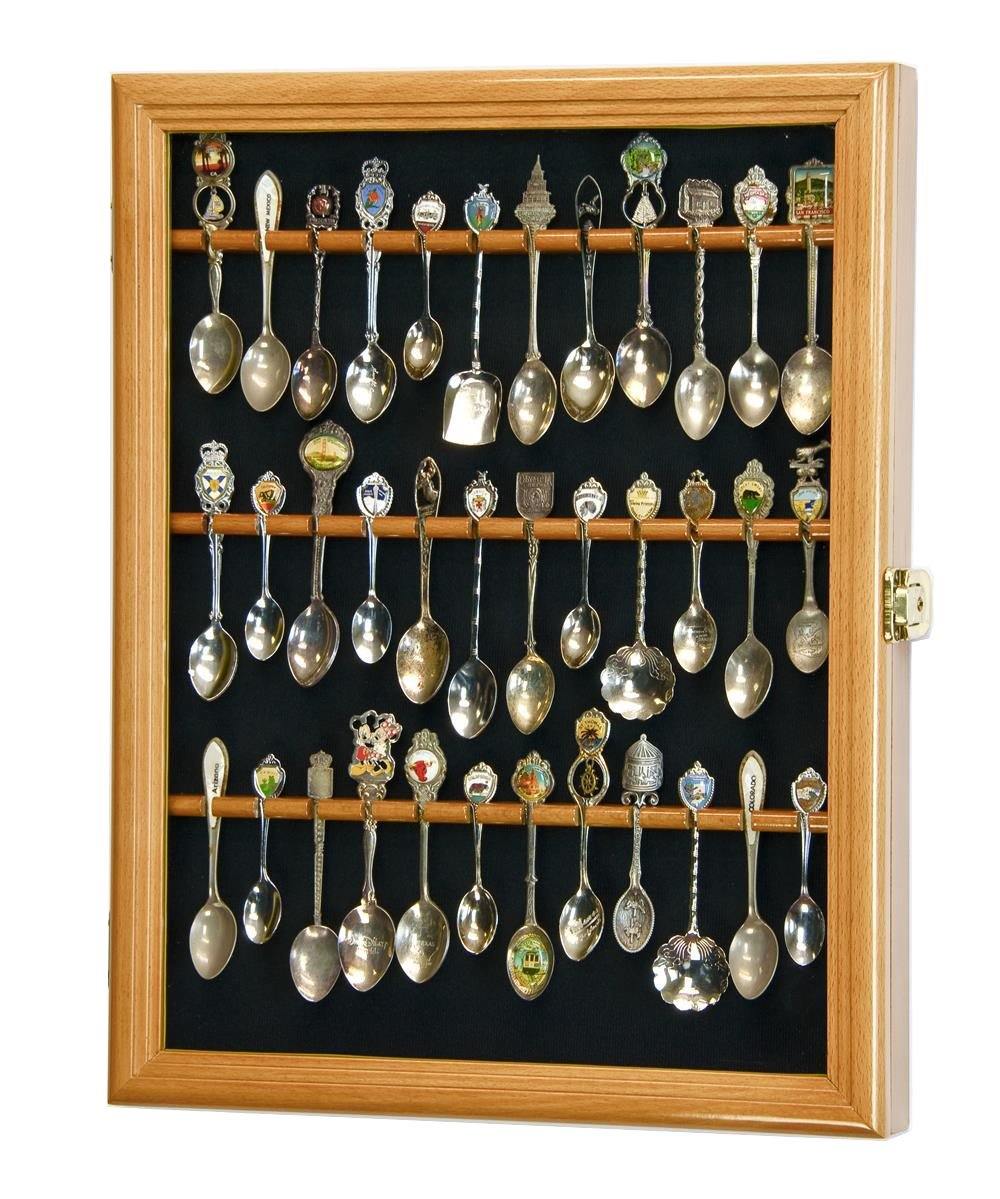 Display them in this beautiful 36 Spoon Display Case, designed with grooved wood racks that securely hold up to 36 regular-sized spoons.