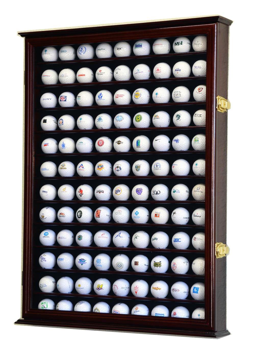 Display it in this beautiful 108 Golf Ball Display Case Cabinet, designed with a crown trim, plexiglass door, and 12 grooved wooden shelves to hold up to 108 golf balls.