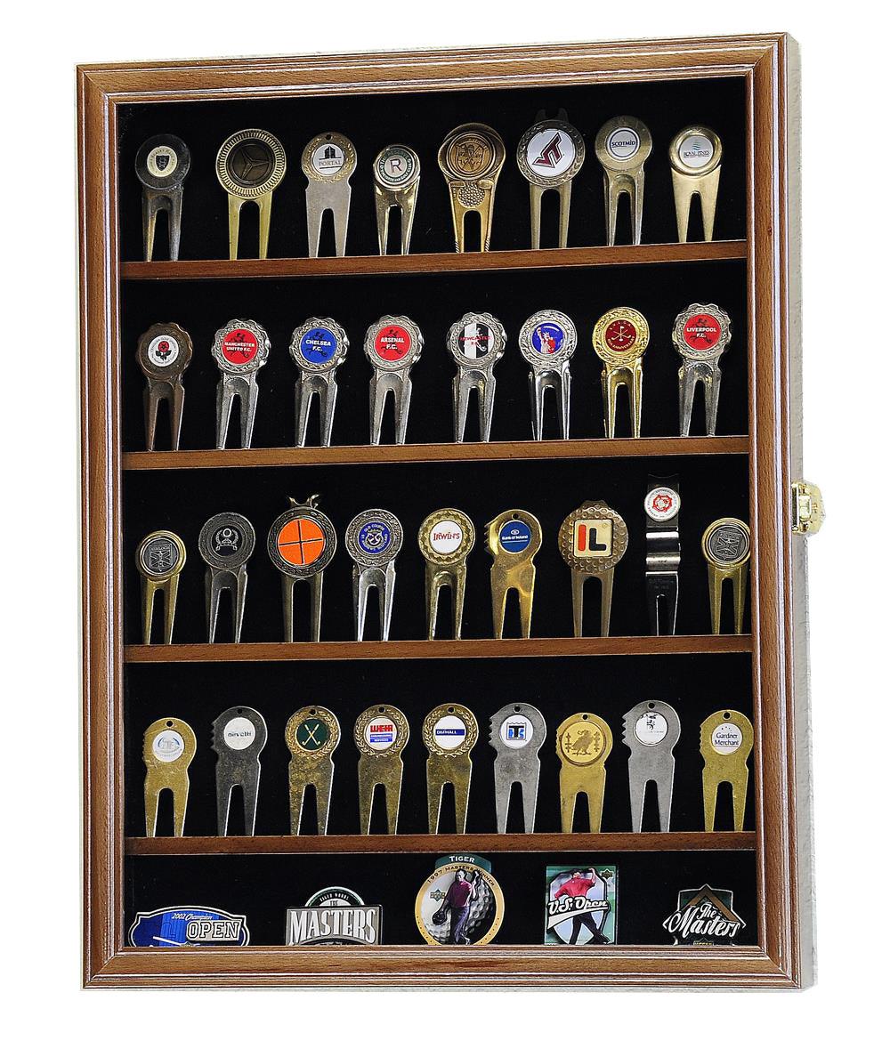 Golf Divot Tool Markers Coin Chips Medallion Display Case Cabinet