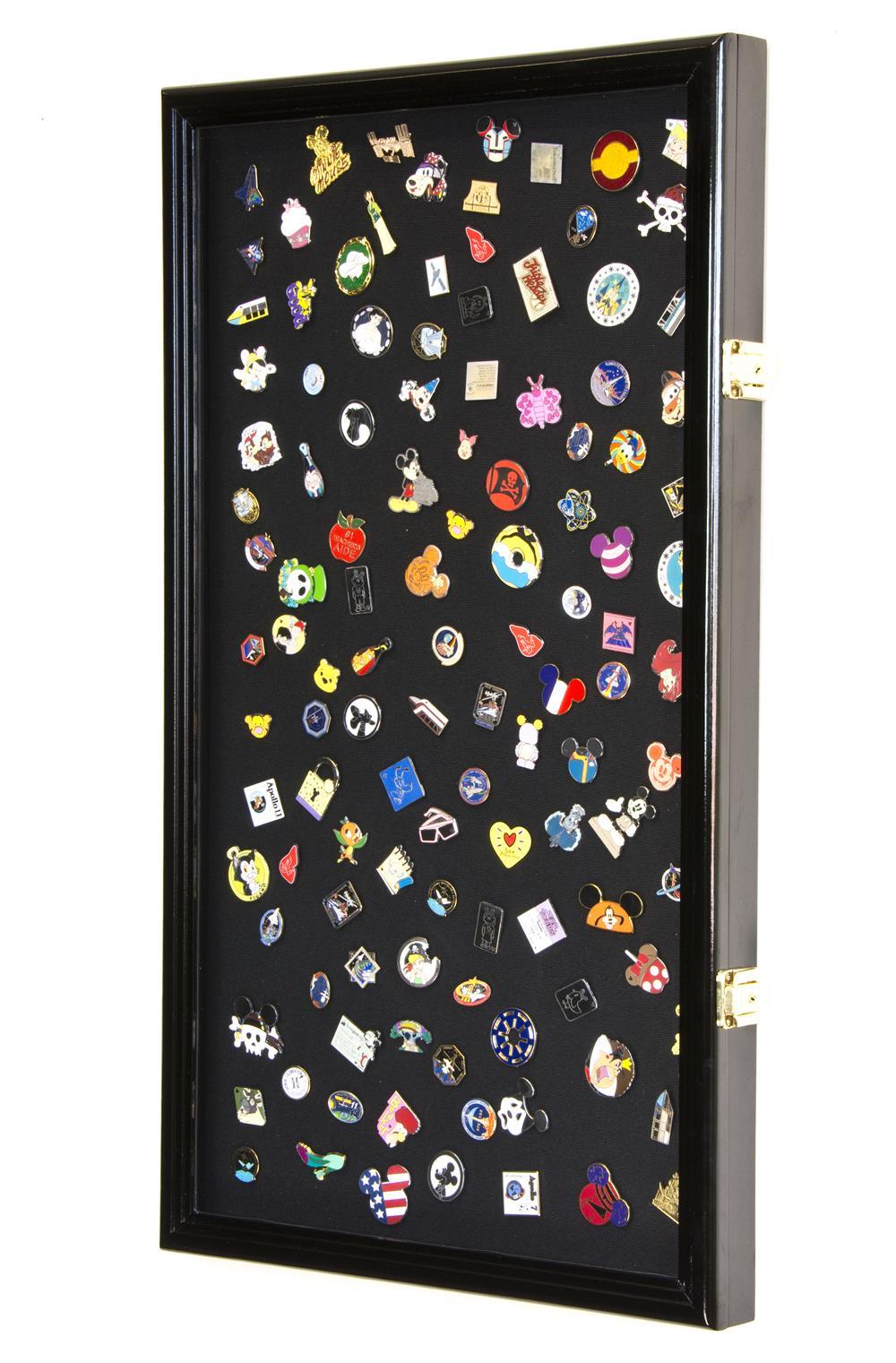 Display it in this beautiful Large Pin Display Case Cabinet, designed with a large pinnable felt and plexiglass door to securely showcase a mix of pins, ribbons, medals, buttons.
